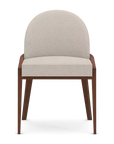 A truly delightful carved dining chair that seamlessly combines curves and geometric lines in perfect harmony. Featuring a gently elliptical half-moon back and a hand-carved wood frame with angular legs and armrests, this versatile piece is suited to any dining setting. Also available with armrests (30-0196).