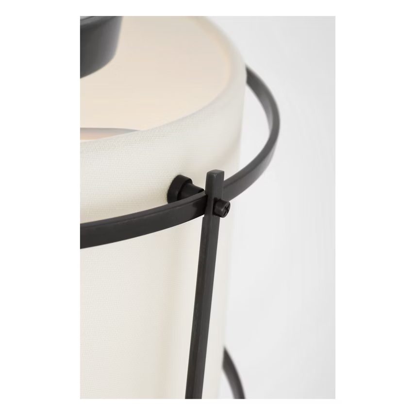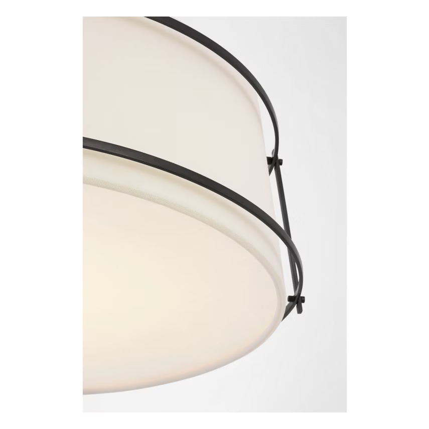 Showcasing the beauty of form and utility, the Callaway by Carrier and Company features a contrast of materials and textures. The slightly tapered, linen drum shades are suspended by a metal cage, lending both physical and visual structure to the hanging shade styles and flush mount. Exposed screws highlight the utilitarian aesthetic and draw subtle focus to the meeting points of horizontal and vertical lines. Contrasted by polished nickel, iron or antique brass, the natural linen shade will cast a soft light in any interior, offering a modern yet slightly vintage feel.