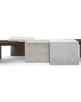 Named in honour of the most famous of all Modernist architects, Ludwig Mies van der Rohe, this imposing coffee table is a minimalist masterpiece of design and construction. A central wood cube is framed on diagonal corners by overlapping open blocks, alternately in wood and a choice of Nero Marquina or white Carrara marble.