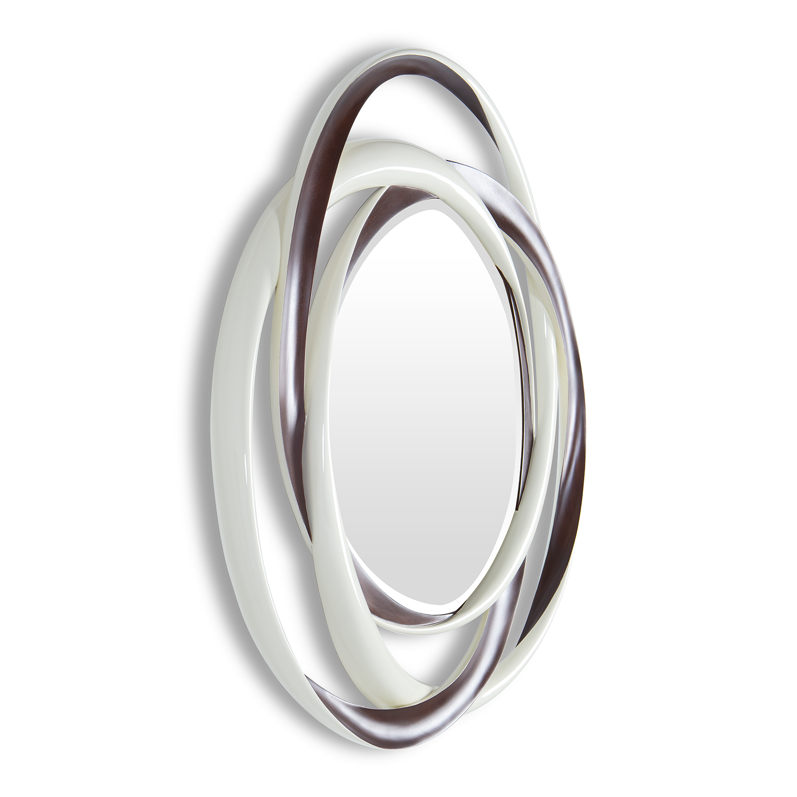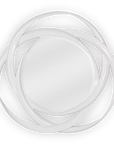Utterly stunning, this fabulous 'spyrograph' mirror blends the simplicity of three single ribbon rings with the complexity of hand carved twists, to hypnotic effect.