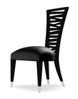 Side chair in Black Matte /Brushed Nickel and Casanova Black Rhino leather seat.