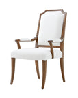 The Sloane Armchair is a beautiful homage to English influence in 19th century design. Sumptuous upholstery across the backs and arms add a sense of refinement, while slender, saber legs compose the delicate form of the base. Handcrafted from khaya swirl and khaya wood. Finished in Edwardian Brown, upholstered in Shown in Edwardian Brown Finish in Winston Performance-UP7280 Fabric.